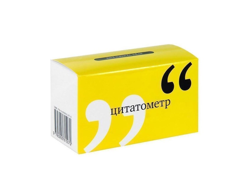 Игра в слова — «Цитатометр». В коробке 120 двусторонних карточек с известными и не очень цитатами великих людей и тремя варинтами их окончания. Игроки должны выбрать верный вариант. Играйте с друзьями или дома всей семьёй — удовольствие от игры в любом случае гарантировано!