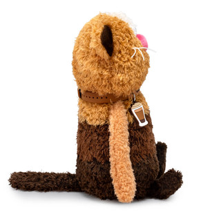 Шикарный кот Фраппе из тактильно приятного эко меха в трех оттенках: цвета горького шоколада, цвета золотистой карамели и белоснежного цвета молочной пенки. Лапки и хвостик из более короткого меха. Усики из шелковистого крученого шнура. Объемный носик обтянут розовым софтом. Глазки из пластика. Пяточки и внутри ушек софт шоколадного цвета. На шейке у кота силиконовый чокер с названием и небольшим подвесом в виде стаканчика с кофе фраппе. Чокер легко снимается и может послужить в качестве модного браслета для хозяина.