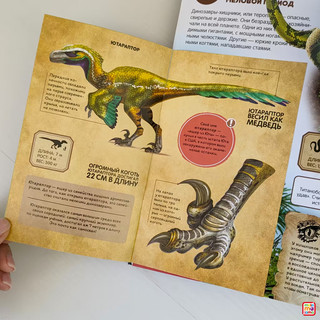 Интерактивная энциклопедия «Динозавры и другие доисторические животные» от торговой марки Malamalama — это захватывающее путешествие по доисторической Земле. Ваш малыш сможет прогуляться в древних тропических лесах, где познакомится со знаменитыми свирепыми ящерами. Масштабные POP-UP конструкции, множество клапанов и выдвигающихся элементов, интересные факты, натуралистичные иллюстрации — всё это ждёт юного читателя под обложкой энциклопедии. Интерактивная энциклопедия — идеальная настольная книга для маленького почемучки. Разгадывайте главную загадку нашей планеты — изучайте удивительных ящеров вместе с Malamalama!