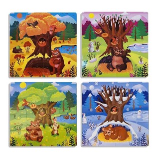 Набор пазлов ВРЕМЕНА ГОДА 4 в 1 из новой серии обучающих пазлов Академия наук 3+. Каждое время года