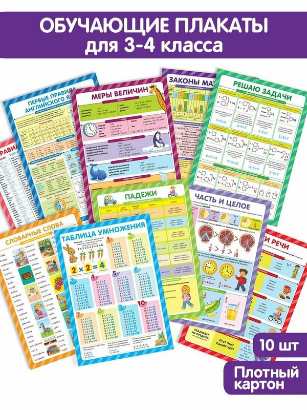 Обучающие плакаты 'Учусь на отлично' 3-4 класс, набор плакатов