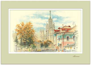 Постер 'Москва' А4 с двойным цветным паспарту №15