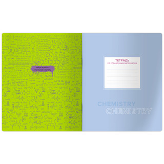 Тетрадь предметная «Химия» из серии «Квест» со справочной информацией на форзаце и титульном листе. Формат А5. Вид крепления — скрепка. Обложка — печать металлизированным пантоном, мелованный картон с выборочным лаком, скругленные углы. Внутренний блок — 48 листов, офсет 60 г/м2, клетка с полями.