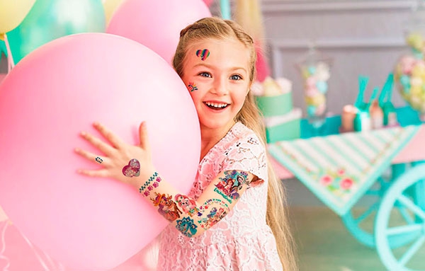 девочка с татуУ Белого Кролика есть как супермилые тату для принцесс, так и сеты временных татуировок для храбрых и сильных юных мужчин!