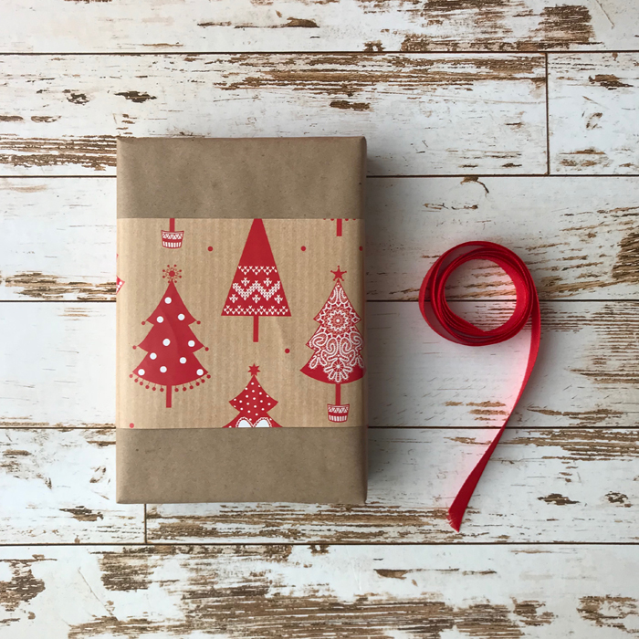 Теперь обернём подарок декоративной бумагой: