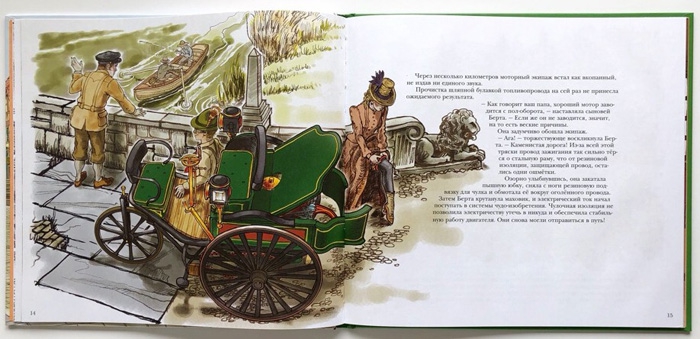По дороге ей пришлось столкнуться с различными трудностями. Но не даром же она помогала мужу конструировать!Заглох двигатель? Засорился бензопровод? Не беда, в ход идет самая обычная шляпная булавка. А когда закончился бензин, можно попросить в ближайший аптеке пять литров лигроина — бензиносодержащего растворителя, который обычно покупали в небольших дозах для выведения пятен с одежды...