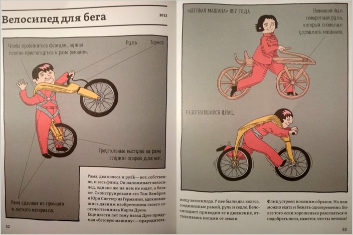 Чем не прообраз современного беговела? (1817 год!!!)Эта книга станет отличным подарком тому, кто любит фантазировать и выдумывать разные вещи. Именно такие «небылицы» вдохновляют даже лучше, чем привычные рассказы о великих изобретателях! Ведь даже самые безумные идеи могут воплотиться и обрести жизнь :)