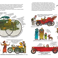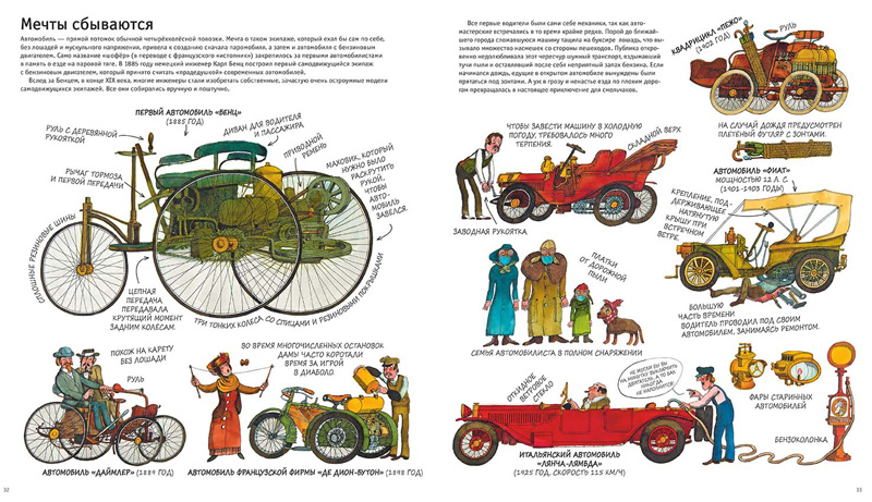 Египетские и римские колесницы, средневековые подъёмные краны, самоходные парусные экипажи XVII века, первые паровые автомобили и локомотивы, первые велосипеды и роликовые коньки, знаменитый массовый автомобиль «Форд Т» Генри Форда, первый электромобиль, гоночный автомобиль с ракетным двигателем — всё это и многое другое представлено в этой книге.