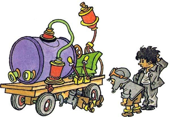 Вспоминайте и пишите нам художественные произведения, в которых герои изобрели что-то фантастическое. Например, в «Приключениях Незнайки» был описан чудо-автомобиль, который работал на газированной воде с сиропом. А в книге «Механический Дед Мороз» Нурдквиста старик Петсон изобрёл и смастерил для своего котёнка Финдуса самого настоящего механического Деда Мороза.