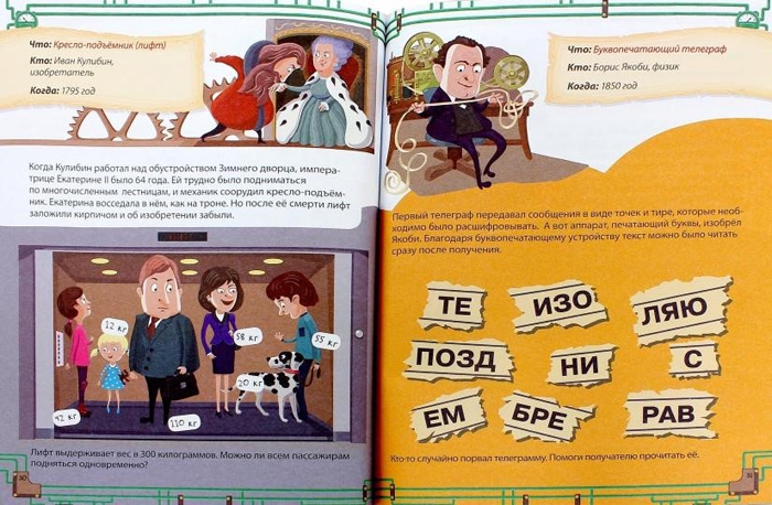 Ещё одна увлекательная книга про изобретения у издательства «Махаон». В ней немного больше текста, поэтому она подойдёт как следующая ступень после серии «Твоя первая энциклопедия».