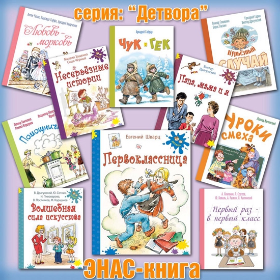 Обязательно обратите внимание в издательстве «Энас-книга» на серии для школьников — сборники рассказов про мальчиков и девочек, про их школьную жизнь, выдумки и приключения. В сериях «Детвора» и «Озорные истории» собраны произведения известных российских и зарубежных авторов, написанные о детях и для детей. Увлекательные истории, школьные будни и курьеры — вот главные темы этих рассказов.