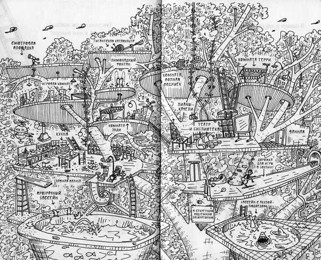 Весёлая книжка о доме мечты очень многих мальчишек. Тут тебе и таинственная лаборатория, и кровати сами заправляются, и зефирная машина, и самый настоящий бассейн, и множество забавных приключений.