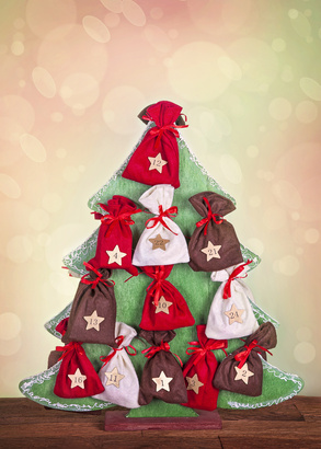 Такой календарь можно сделать самим — найдите коробочки или мешочки подходящих размеров. Мешочки можно повесить, коробочки — поставить или приклеить. Проявите фантазию! Некоторые варианты календарей показаны ниже.