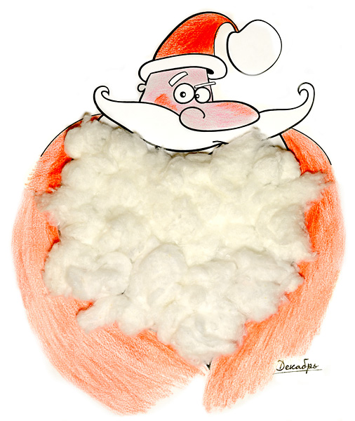 • Собирайте бороду Деду Морозу, наклеивая ватные шарики или кусочки обычной ваты на кружки с соответствующей датой