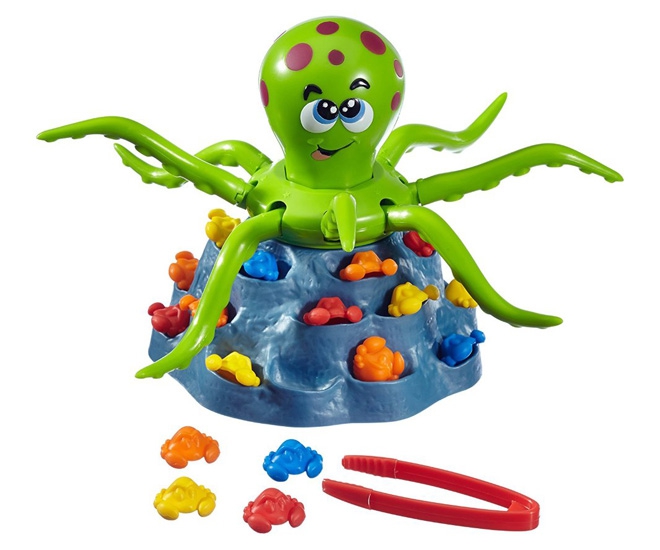Собери всех крабов своего цвета! Но будь готов осьминог хохочет и размахивает щупальцами.