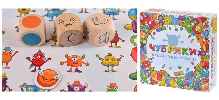Настольная игра для малышей ЧубрикиКидай кубики, ищи подходящего чубрика, делай как чубрик! Быстрая, азартная и очень смешная игра :)