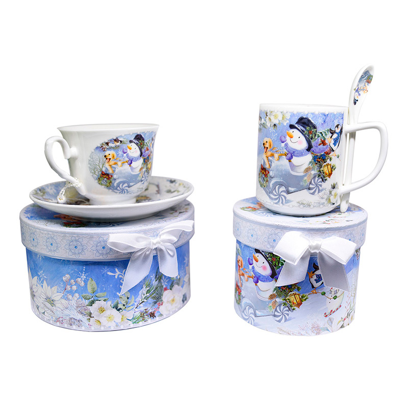 Приятно и удивительно пить ароматный чай из чашек с символом года. Точно, смотрите, вон пронеслась в звёздном небе оленья упряжка с Дедом Морозом на борту!