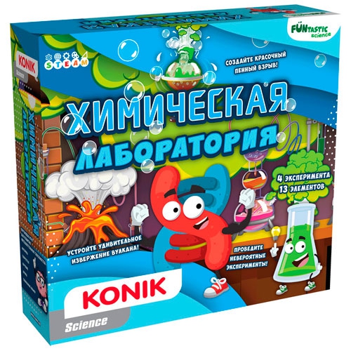 Мир удивительных знаний начинается с малого! Нужно только сделать первый шаг! Набор для экспериментов "Химическая лаборатория" KONIK Science