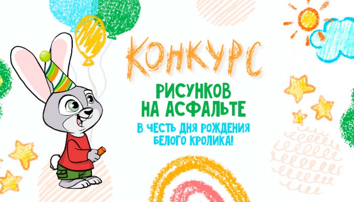 Лето — время творчества и веселья. Белый Кролик решил совместить приятное с полезным и предлагает вам нарисовать поздравления мелками прямо на асфальте!