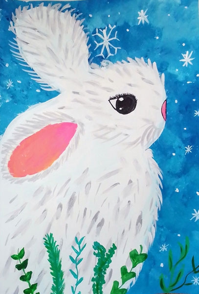 123. Шамгунова Диляра, 10 лет, "Белый Кролик на полянке"
