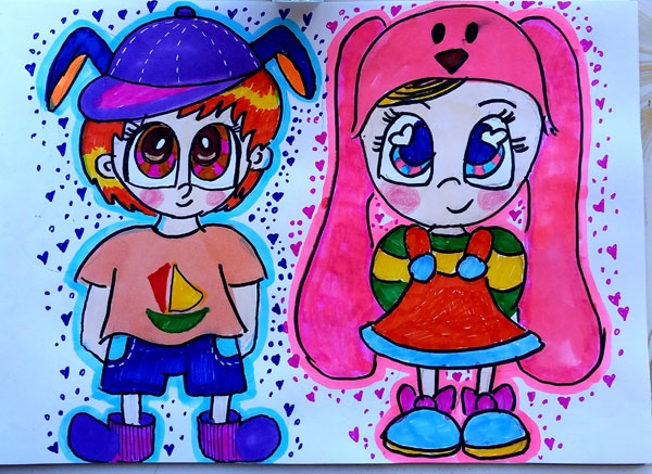 Конкурс Нарисуй Кролика в стиле аниме, Рафаилова АлександраДевочка в костюме кролика с маленьким другом Кроликом