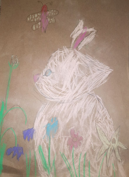 128. Фокин Кирилл, 6 лет, "Белый кролик и бабочка"