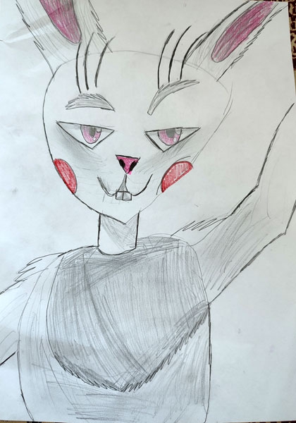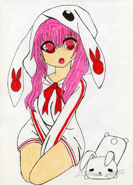Конкурс Нарисуй Кролика в стиле аниме, Иванова СофияМой кролик не выспался, оттого и с красными глазами.