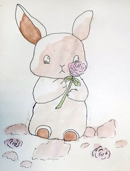 Конкурс Нарисуй Кролика в стиле аниме, Ветрова ВикторияБелый кролик решил на свежем воздухе нарисовать себя