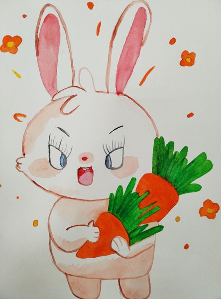 Конкурс Нарисуй Кролика в стиле аниме, Коровкина СофьяТехника: бумага, акварель. Кролик очень жадный, ни с кем не желает делиться своей едой.