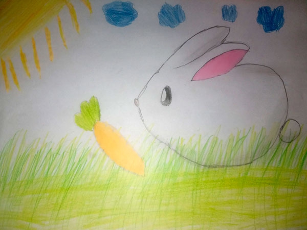 177. Чернокоз София, 7 лет, "Белый зайка с морковкой"
