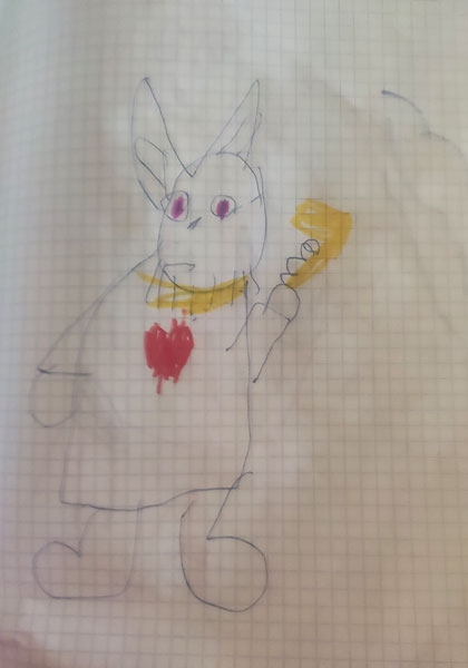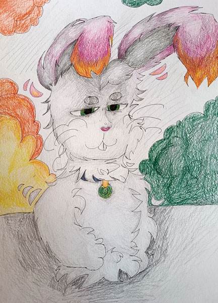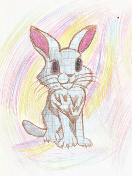 Конкурс Нарисуй Кролика в стиле аниме, Кириллов АртемЭто девочка кролик, у неё розовые глазки. Но ещё у неё есть коготочки, она может за себя постоять. Рисунок нарисован цветными карандашами и многоцветным карандашом.