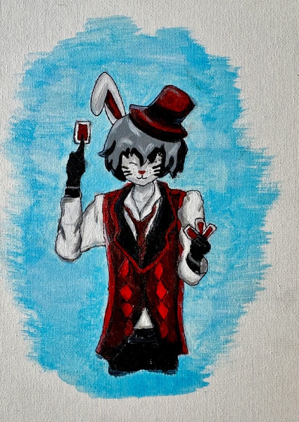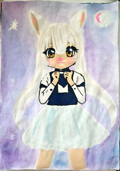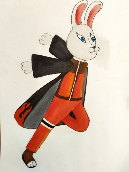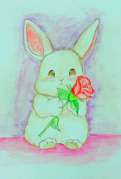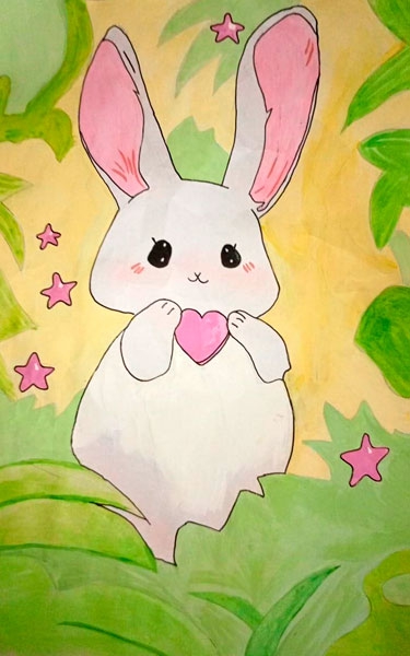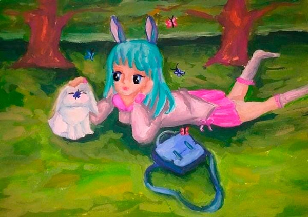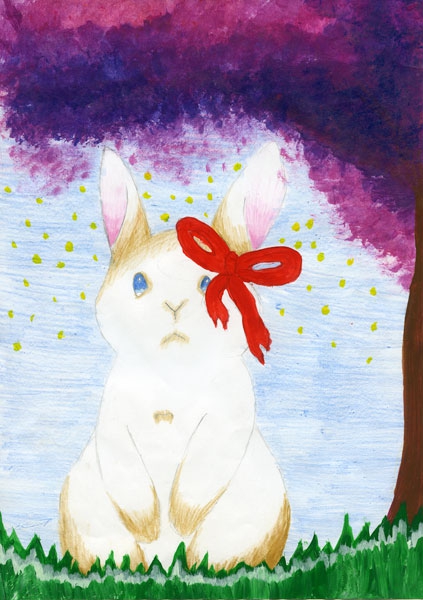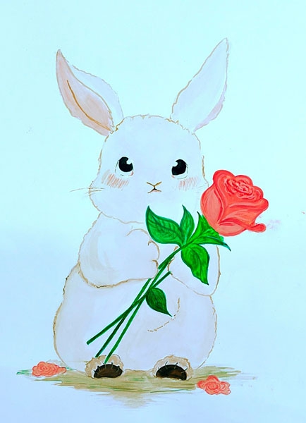 Конкурс Нарисуй Кролика в стиле аниме, Жданова ВалерияРисунок выполнен кистью и гуашью. Процесс создания рисунка занял три дня. Лера очень ответственно подходит к выполнению любого дела.
