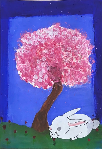 532. Поленова Есения, 11 лет, "Белый кролик и сакура"
