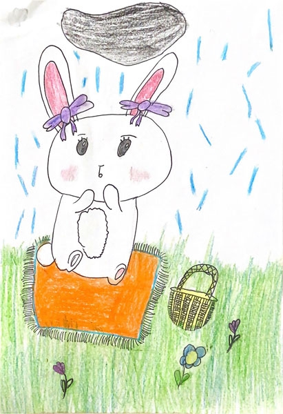Конкурс Нарисуй Кролика в стиле аниме, Бессонова ОльгаКролик была на пикнике, и внезапно пошел дождь.