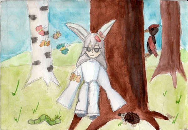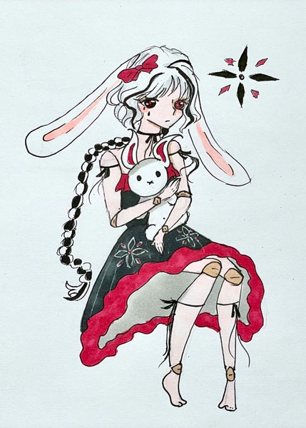 Конкурс Нарисуй Кролика в стиле аниме, Золотарёва ВероникаОдинокий кролик между мирами ищет себе друзей.