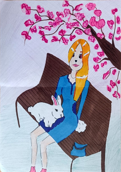 598. Руденко Екатерина, 15 лет, "Кролик и сакура"