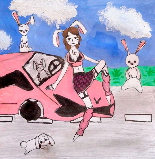 568. Ковригина Арина, 11 лет, "Белый кролик и ламборгини"