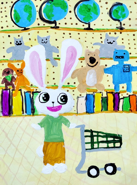 Конкурс Нарисуй Кролика в стиле аниме, Михайленко ГеоргийМаленький зайчонок пришёл в магазин и просто в восторге от увиденного на полочках.