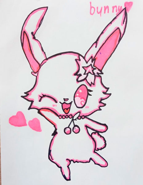 Конкурс Нарисуй Кролика в стиле аниме, Михайленко СофияМаленькие девочки безумно любят розовый :)) Белый, значит нежный!