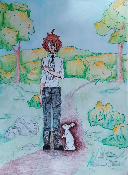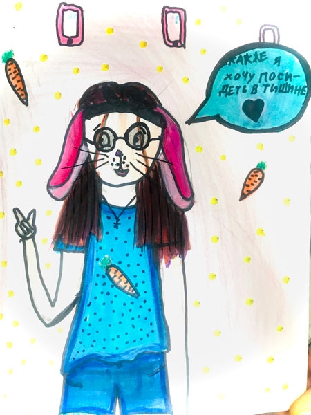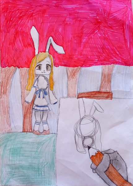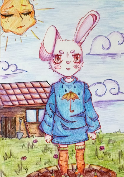 Девушка-заяц долго не могла вернуться домой и наконец-то сумела дойти.650. Ильина Полина, 16 лет, "Мечтающий кролик"