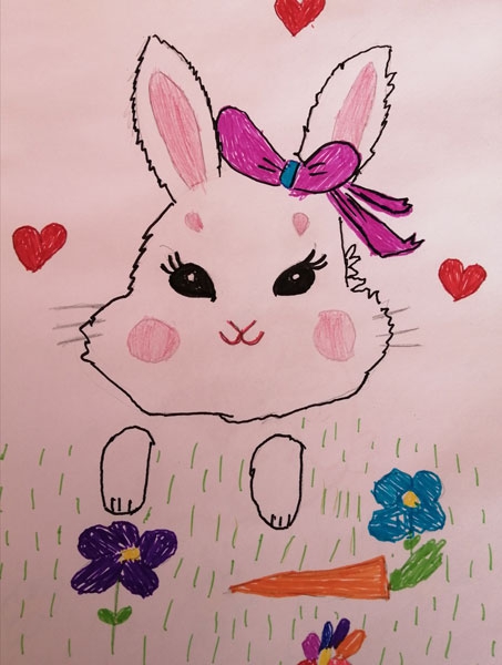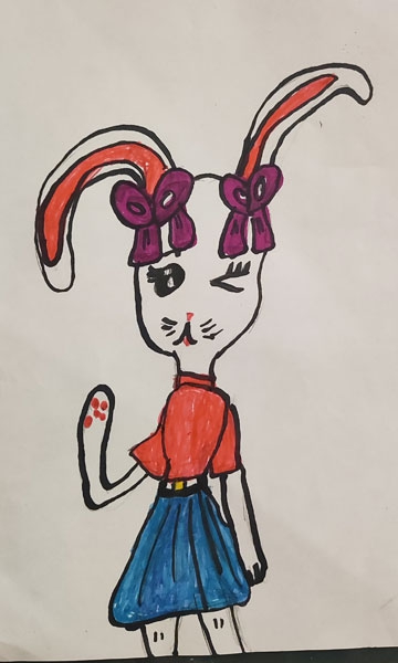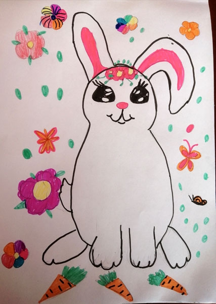 Милая и добрая крольчиха Снежка. Она очень любит праздники, и всегда может прийти на помощь.695. Куртова София, 9 лет, "Кролик-художник"
