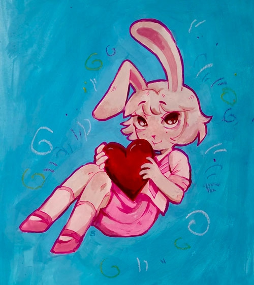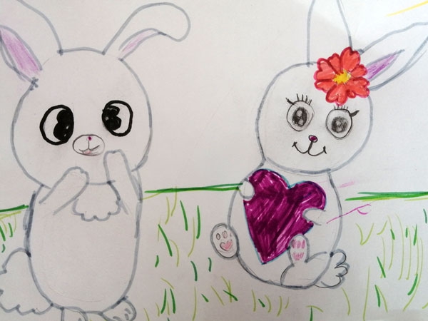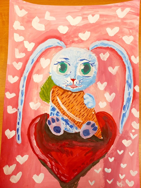 683. Глазунова Дарья, 9 лет, "Белый кролик дарит сердечко"