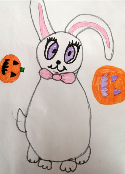 671. Пилюгина Марина, 9 лет, "Белый кролик на празднике хеллоуин"