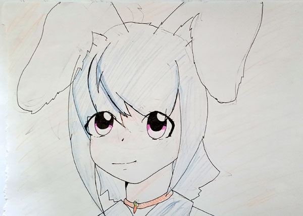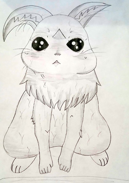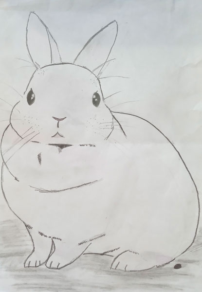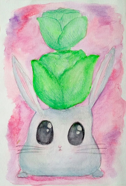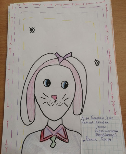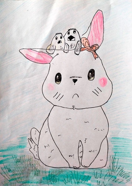 Я решила изобразить белого кролика не в стиле фурри, а как обычный кролик, но с особенностями своего аниме стиля.615. Кузьминова Мария, 12 лет, "Крошка Харуми"