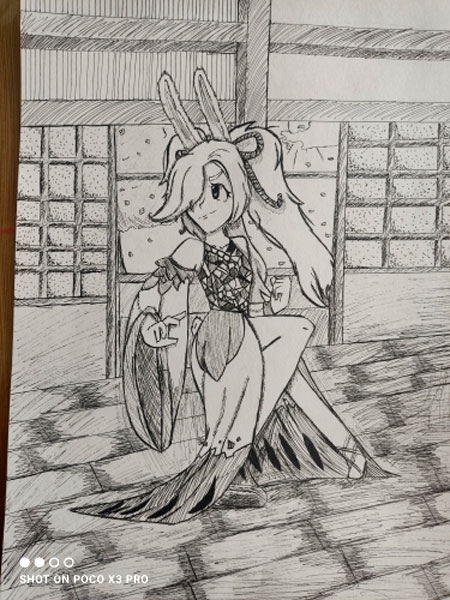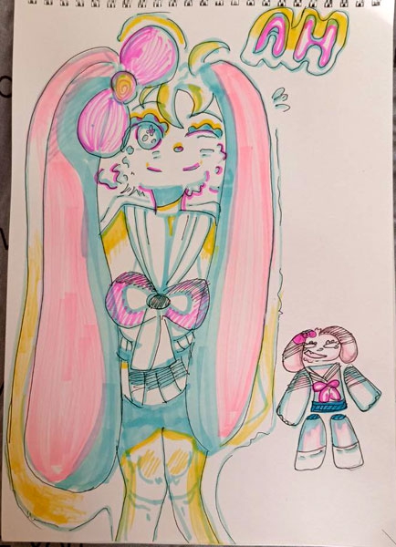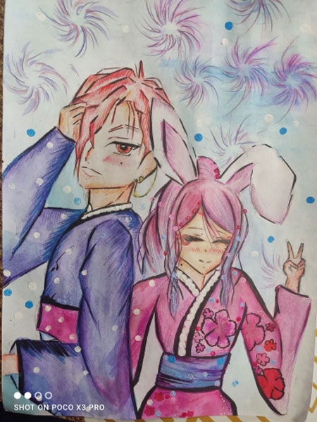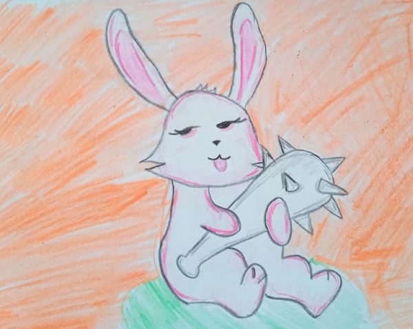 В аниме и манге есть жанр махо-сёдзе, сюжет которого обычно повествует о девочках-волшебницах, дающих по лбу злодеям. Белому Кролику-волшебнице нарисовала подругу по борьбе с вредителями. Выглядят может и мило, но по лбу для профилактики точно дадут. Вот, спасибо за внимание!625. Шилоносова Софья, 11 лет, "Онна бугэйся"