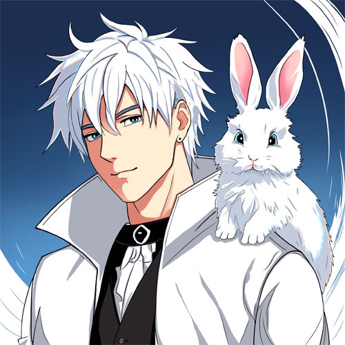Эллиот Вайт — маг с белоснежными сияющими волосами, который обладает даром трансформации. В образе пушистого белого кролика он проводит как можно больше времени, ведь его ловкость и быстрота делает Эллиота неуловимым для врагов, а возможность говорить с другими животными помогает раскрывать тайны мира и волшебства! Нарисовано в Ibis Paint X687. Макарова София, 15 лет, "Милашка"