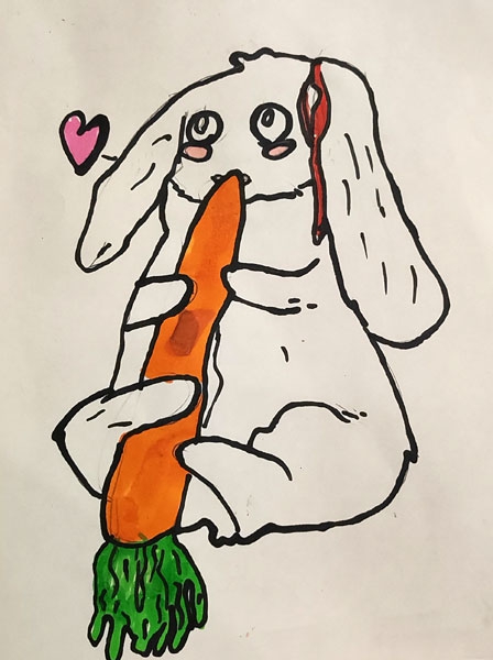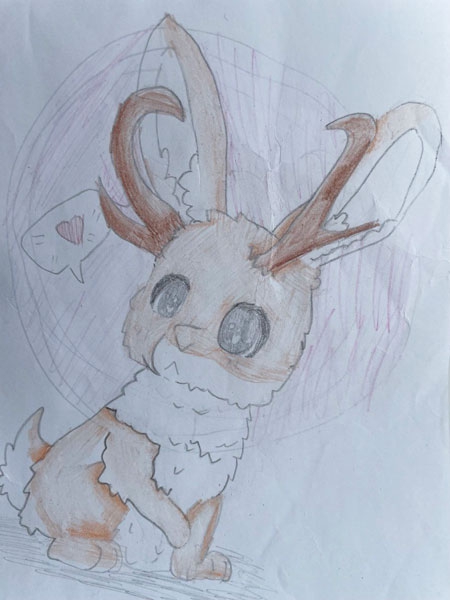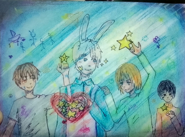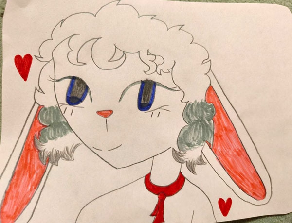 Многие ограничивает себя и боятся делать шаги к новому, чему то необычному. Так и в творчестве. Но если творец сможет победить свой внутренний страх и раскрыться, его картины станут самыми особенными. На картине наш герой — белый кролик, помогает юным творцам выйти за свои рамки и создать что то новое, раскрыть себя.606. Павлова Валерия, 9 лет, "Белый кролик Анимэ"