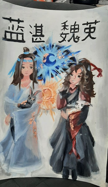 Персонажи взяты из аниме "Магистр дьявольского культа". В нём есть сравнение двух персонажей, как "добро" и "зло", не однозначное. В аниме, как пример объясняется на белом и чёрном кролике.618. Мелехина Полина, 12 лет, "Шикабу"