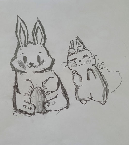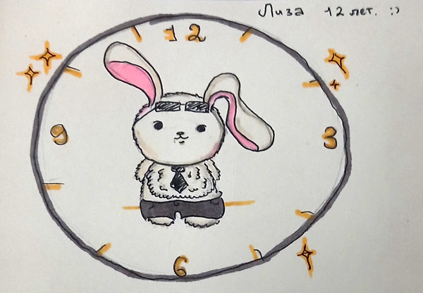 Идея пришла в голову, как ассоциация на человека рождённого в год кролика, такой человек должен быть милым и ловким как кролик.610. Амелькина Анастасия, 15 лет, "Спешащий кролик"