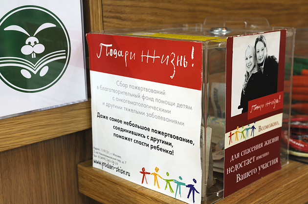 Хорошая новость для неравнодушных: в магазинах «Белый Кролик» на Красной Пресне, Новых Черёмушках и в Щербинке теперь можно приобрести значки «Подари Жизнь». Средства, полученные от продажи этих сувениров, пойдут в фонд для помощи детям с тяжёлыми заболеваниями. Стоимость такого значка-символа помощи, доброты и милосердия — 100 рублей.